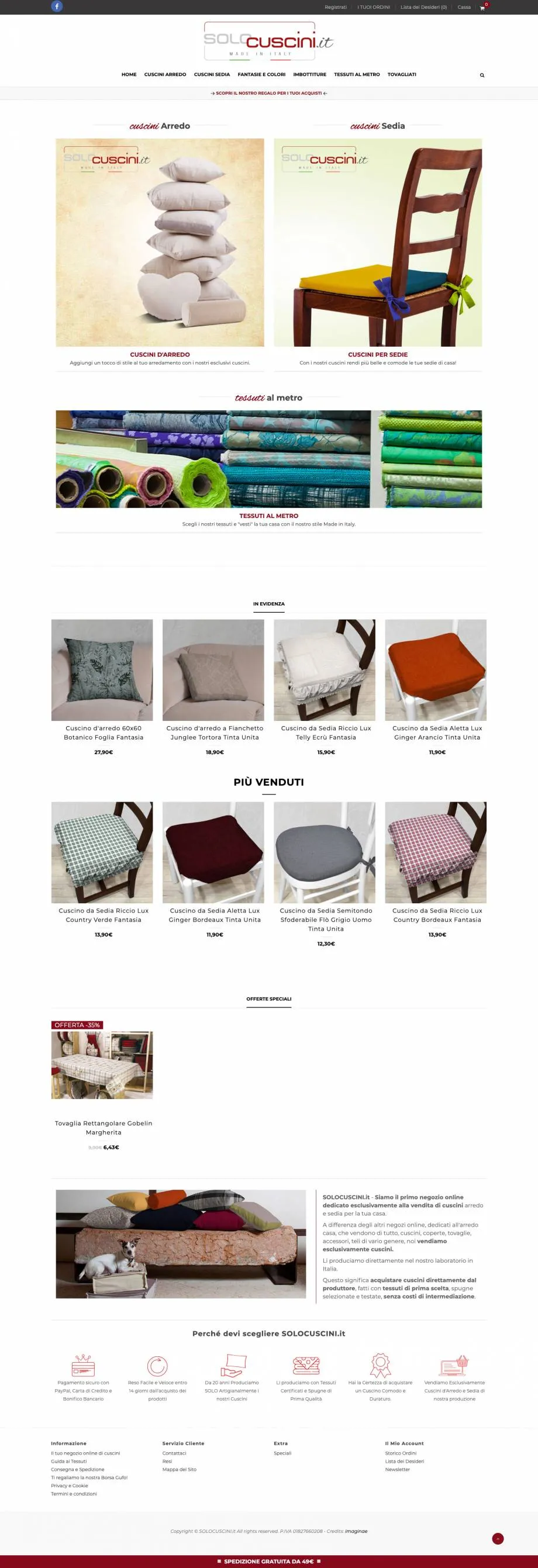 Shop dedicato esclusivamente alla vendita online di cuscini